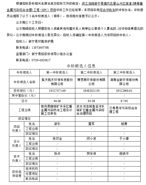 資江流域新寧縣境內五里山片區廢渣(銻等重金屬污染綜合治理)工程(EPC) 招標投標信息公示表