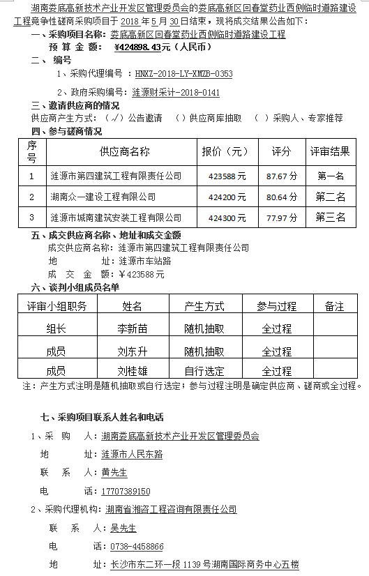 婁底高新區(qū)回春堂藥業(yè)西側(cè)臨時道路建設(shè)工程 競爭性磋商成交結(jié)果公告