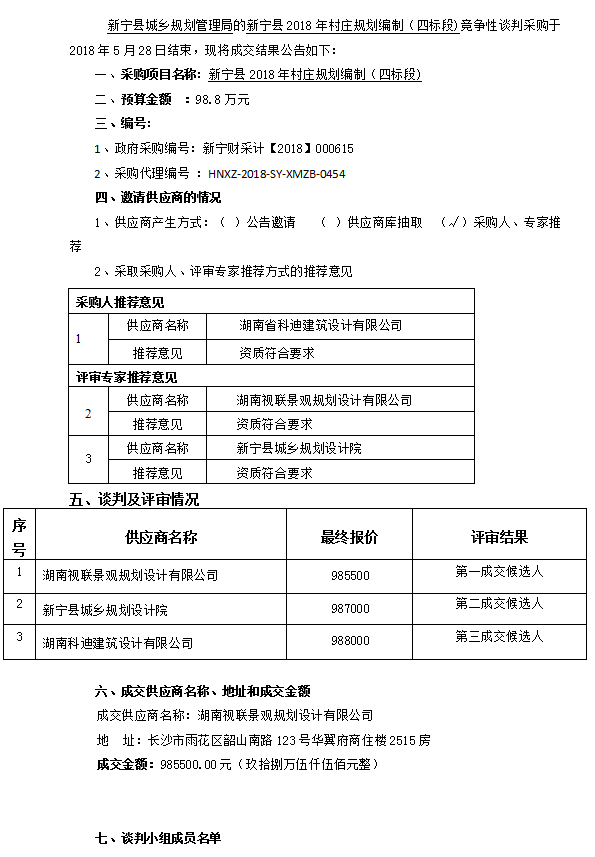 新寧縣2018年村莊規(guī)劃編制(四標(biāo)段) 競爭性談判成交結(jié)果公告