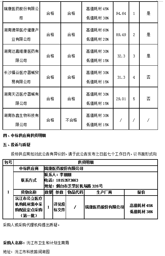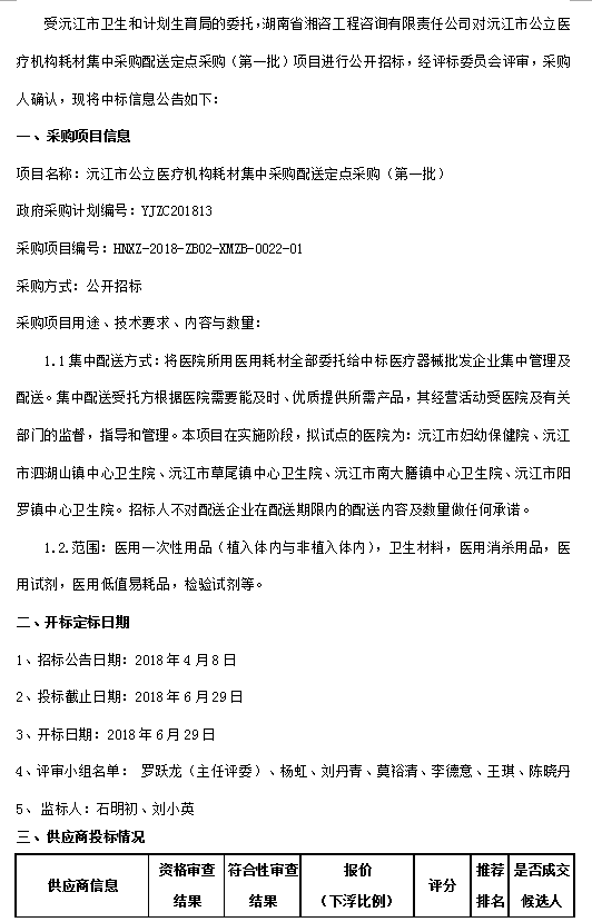 江市公立醫療機構耗材集中采購配送定點采購(第一批)公開招標中標公告
