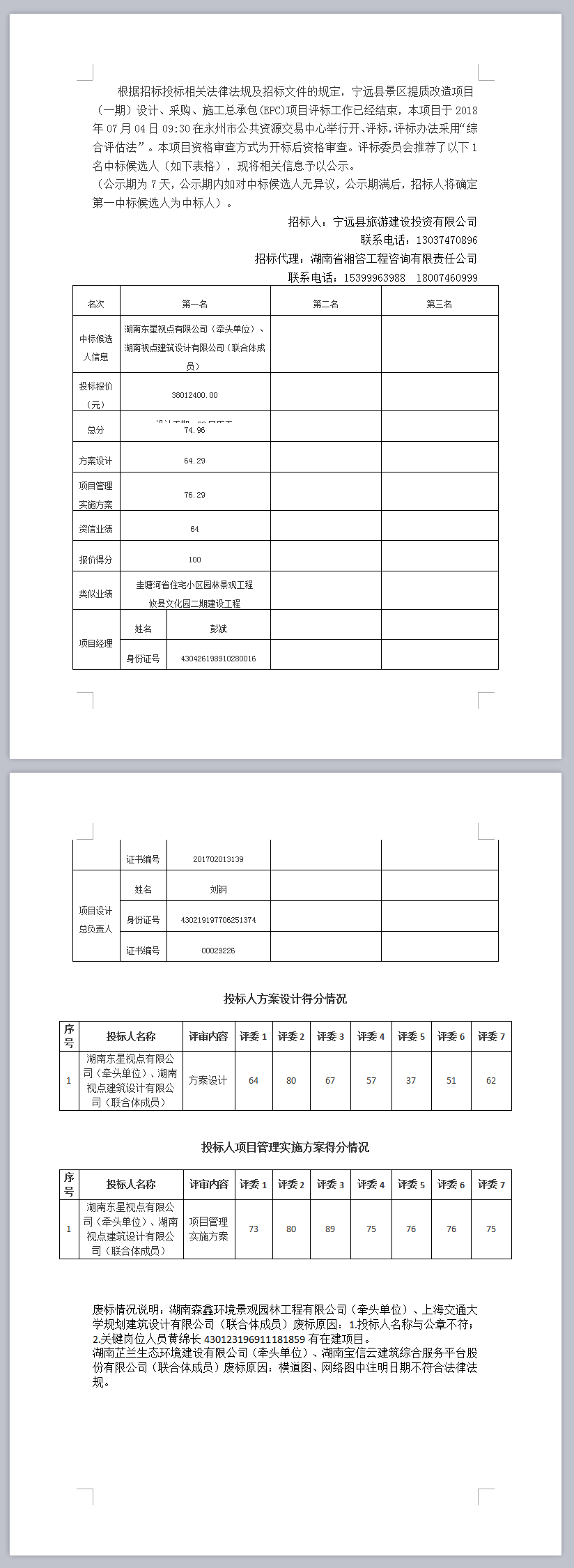 寧遠縣景區提質改造項目(一期)設計、采購、施工總承包(EPC)項目中標候選人公示