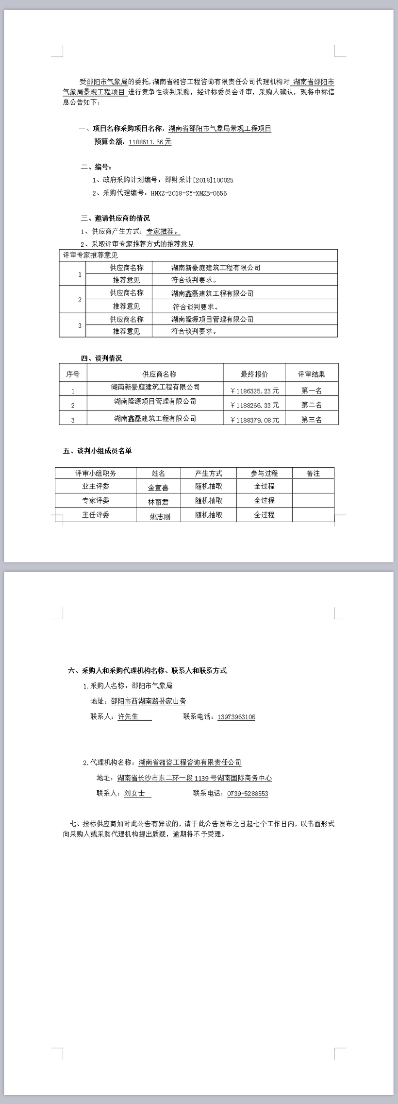 湖南省邵陽市氣象局景觀工程項目競爭性談判成交公告