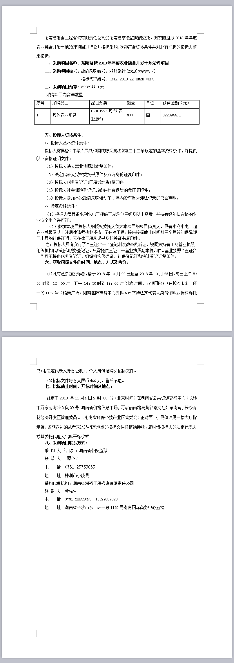茶陵監(jiān)獄2018年年度農(nóng)業(yè)綜合開發(fā)土地治理項目招標公告