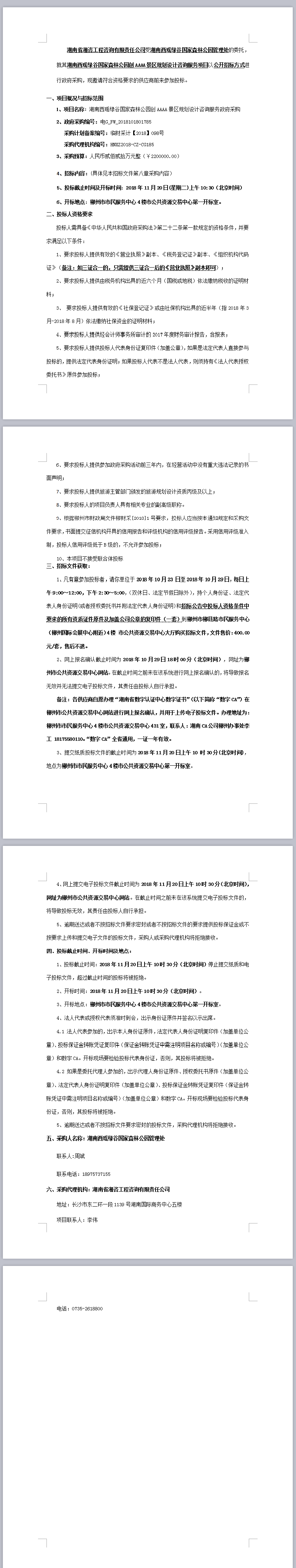 湖南西瑤綠谷國家森林公園創AAAA景區規劃設計咨詢服務政府采購招標公告