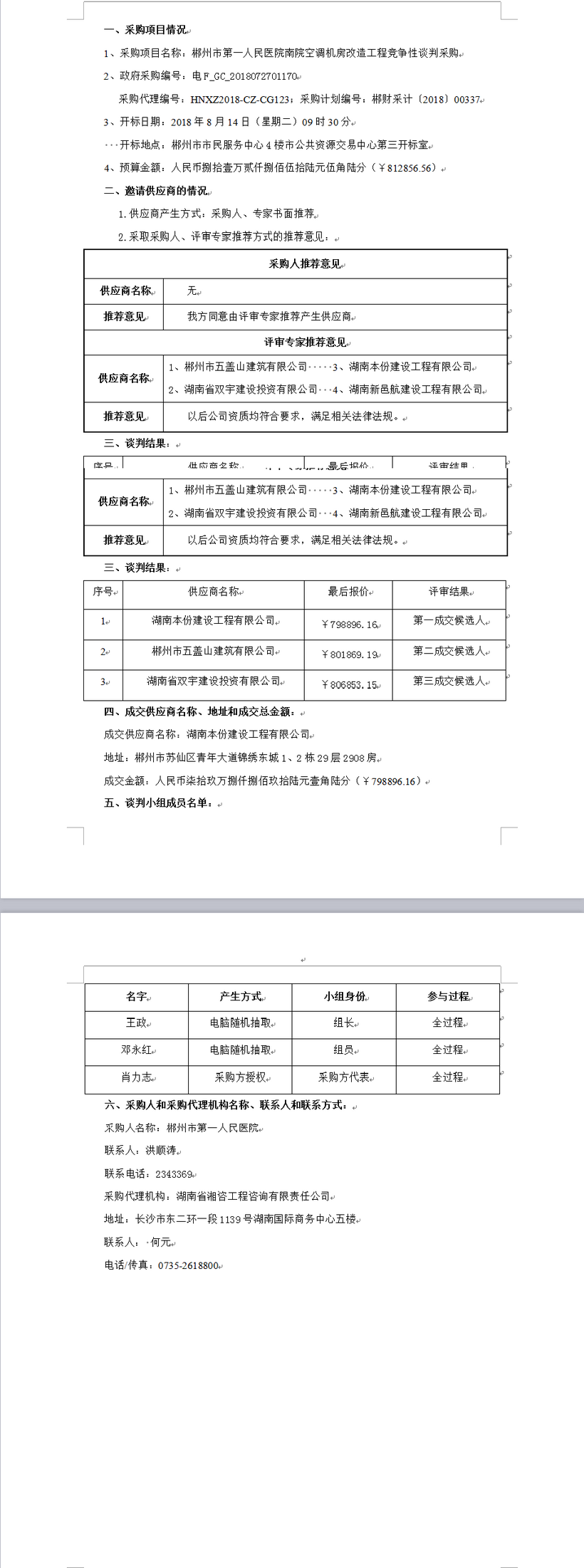 郴州市第一人民醫院南院空調機房改造工程競爭性談判采購成交公告