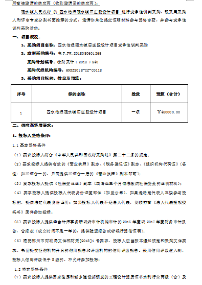四水治理暖水鎮(zhèn)田莊段設(shè)計項目競爭性談判采購 邀請通知