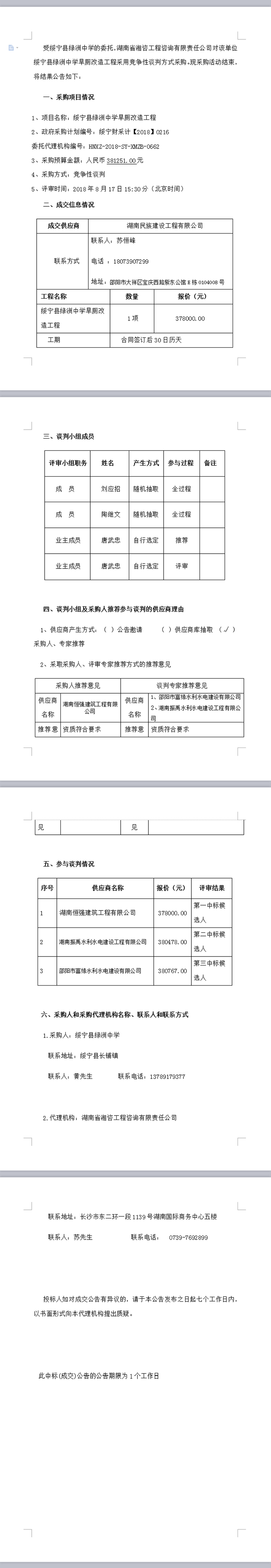 綏寧縣綠洲中學旱廁改造工程談判成交公告