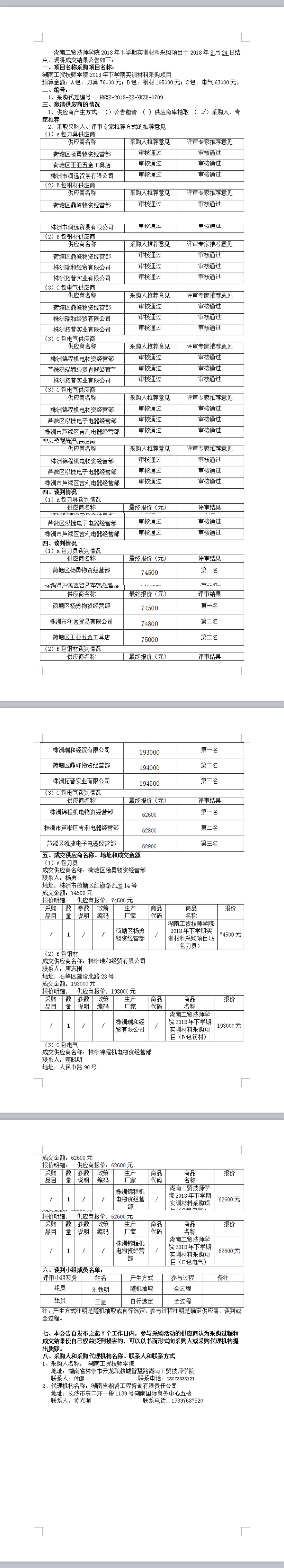 湖南工貿技師學院2018年下學期實訓材料采購項目競爭性談判成交公告