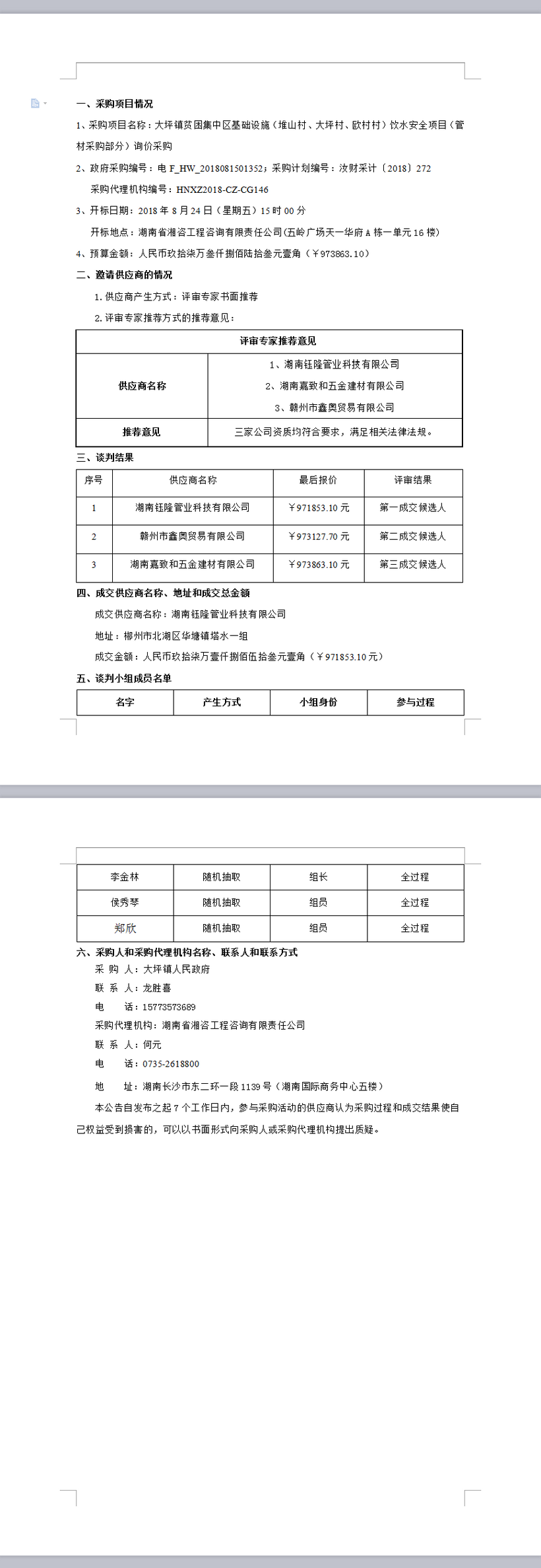 大坪鎮貧困集中區基礎設施(堆山村、大坪村、歐村村)飲水安全項目(管材采購部分)詢價采購成交公告