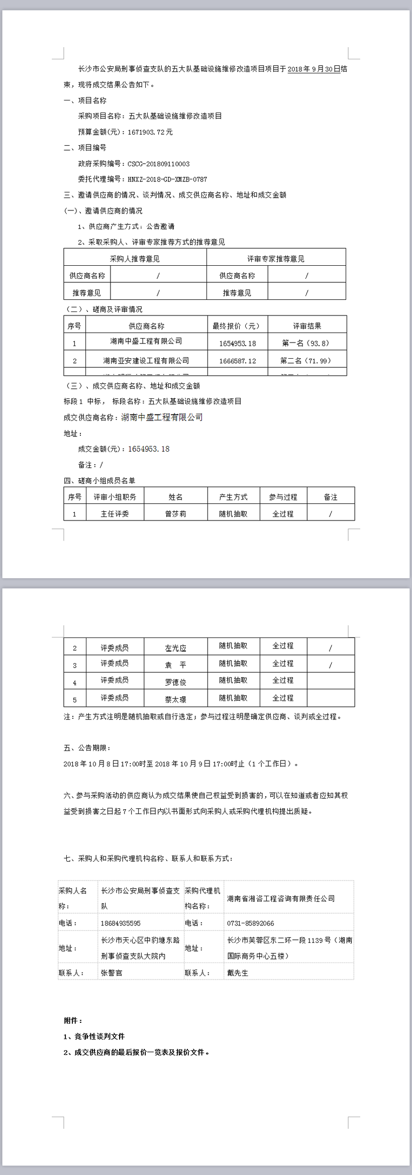 長沙市公安局刑事偵查支隊五大隊基礎(chǔ)設(shè)施維修改造項目結(jié)果公告