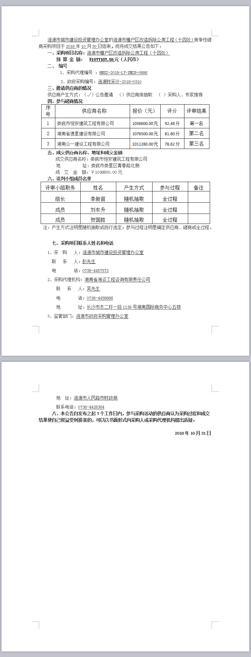 漣源市棚戶區改造拆除公房工程(十四處) 競爭性磋商成交結果公告