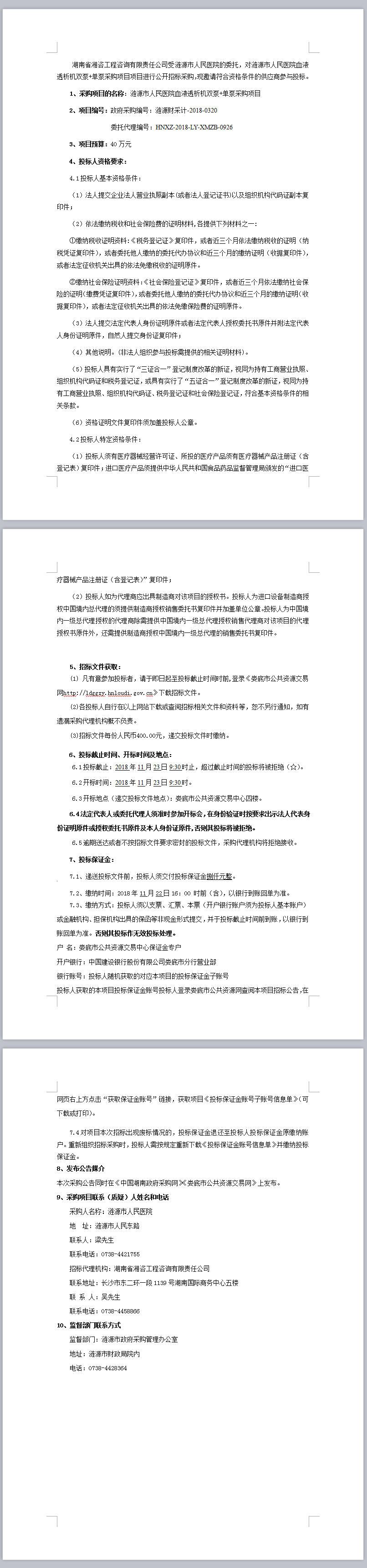 漣源市人民醫院血液透析機雙泵+單泵采購項目招標公告