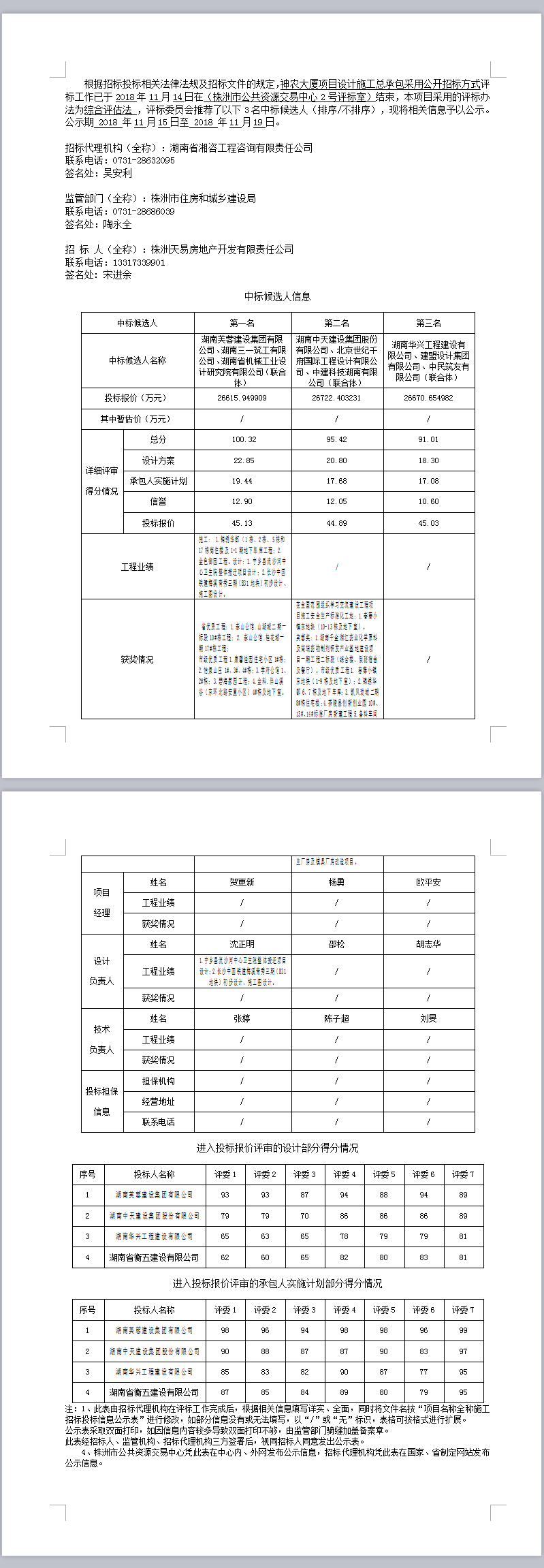 神農(nóng)大廈項(xiàng)目設(shè)計(jì)施工總承包招標(biāo)投標(biāo)信息公示表