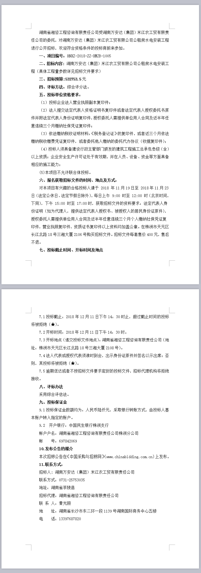 湖南萬安達(dá)(集團(tuán))米江農(nóng)工貿(mào)有限公司公租房水電安裝工程招標(biāo)公告