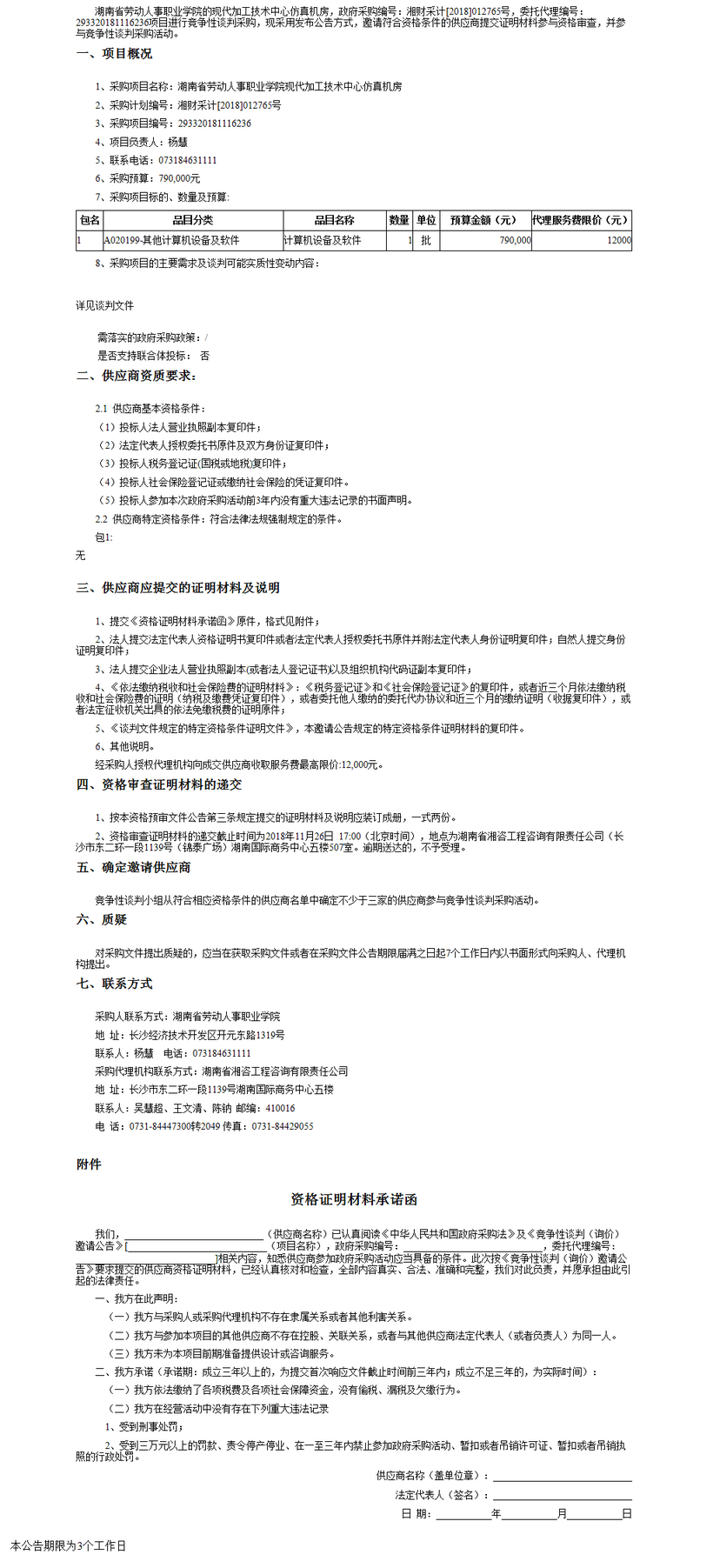 湖南省勞動人事職業學院現代加工技術中心仿真機房項目競爭性談判邀請公告