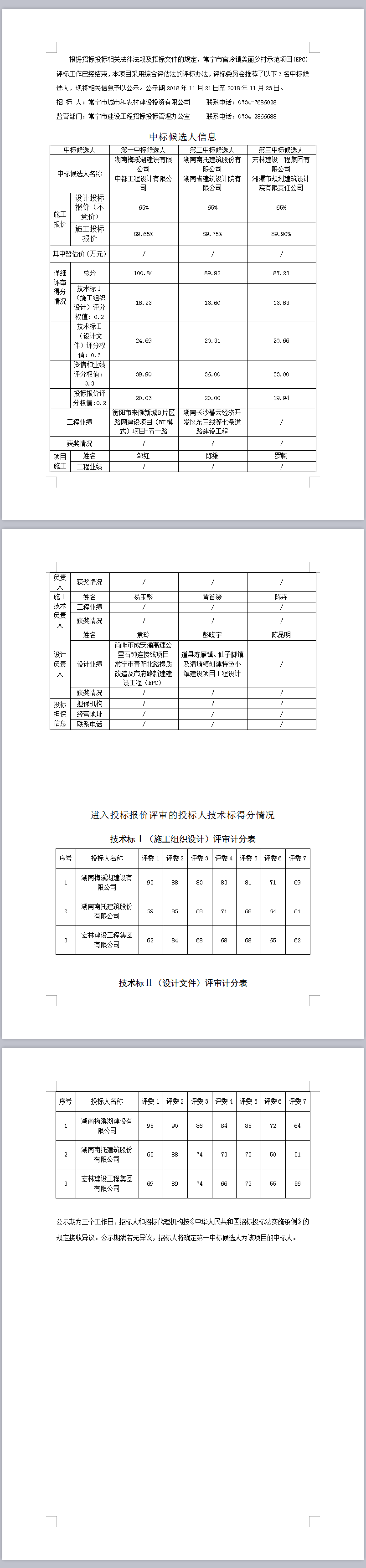 常寧市官嶺鎮美麗鄉村示范項目(EPC)中標候選人 (更正公示)
