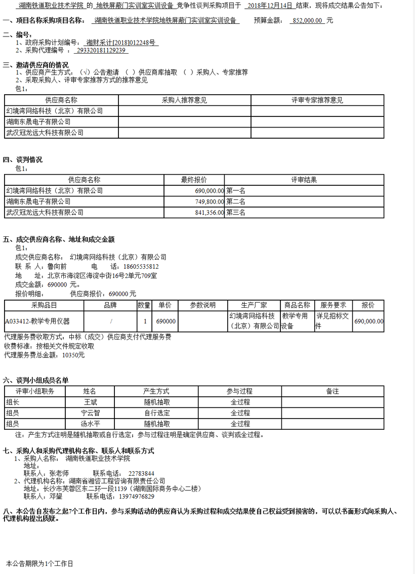湖南鐵道職業(yè)技術(shù)學(xué)院地鐵屏蔽門(mén)實(shí)訓(xùn)室實(shí)訓(xùn)設(shè)備競(jìng)爭(zhēng)性談判成交公告