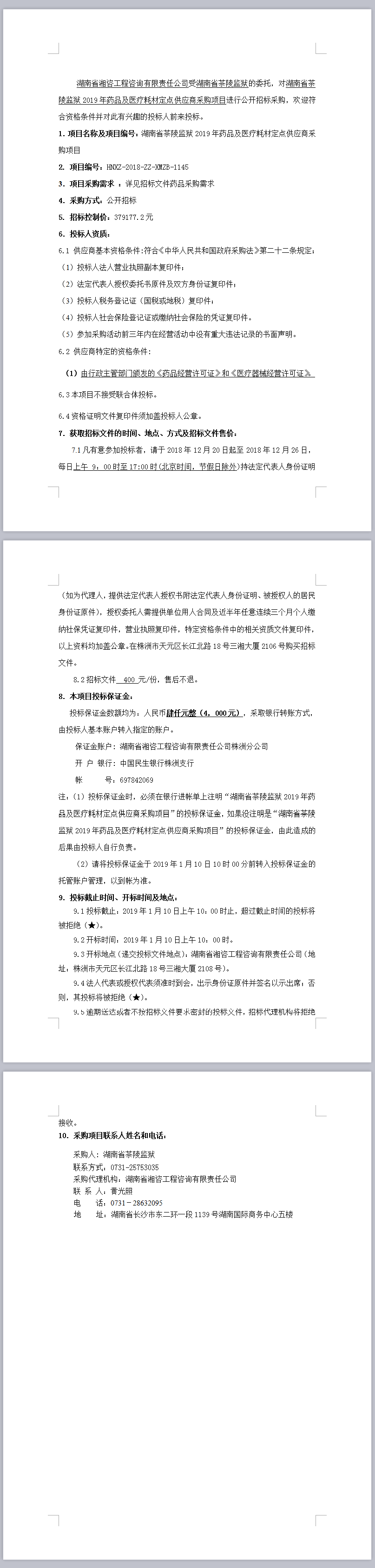 湖南省茶陵監獄2019年藥品及醫療耗材定點供應商采購項目投標邀請