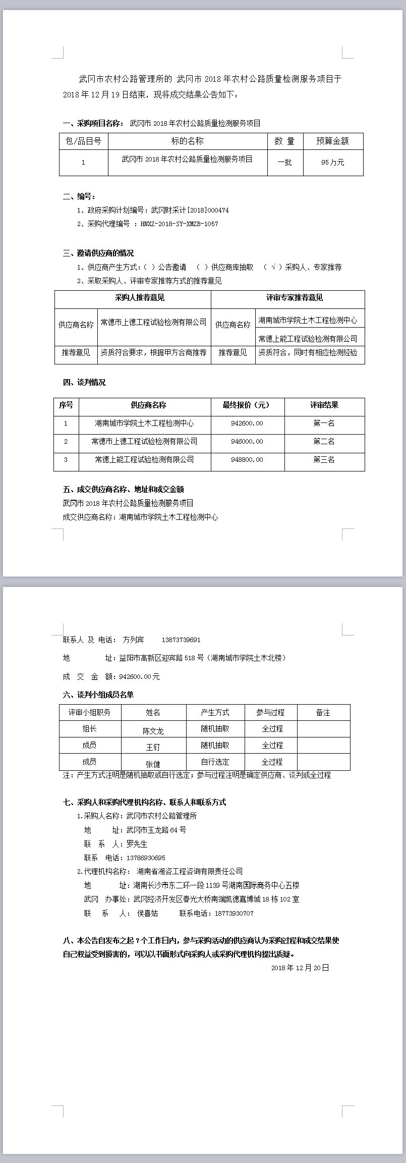 武岡市2018年農(nóng)村公路檢測服務(wù)項(xiàng)目采購競爭性談判成交結(jié)果公告