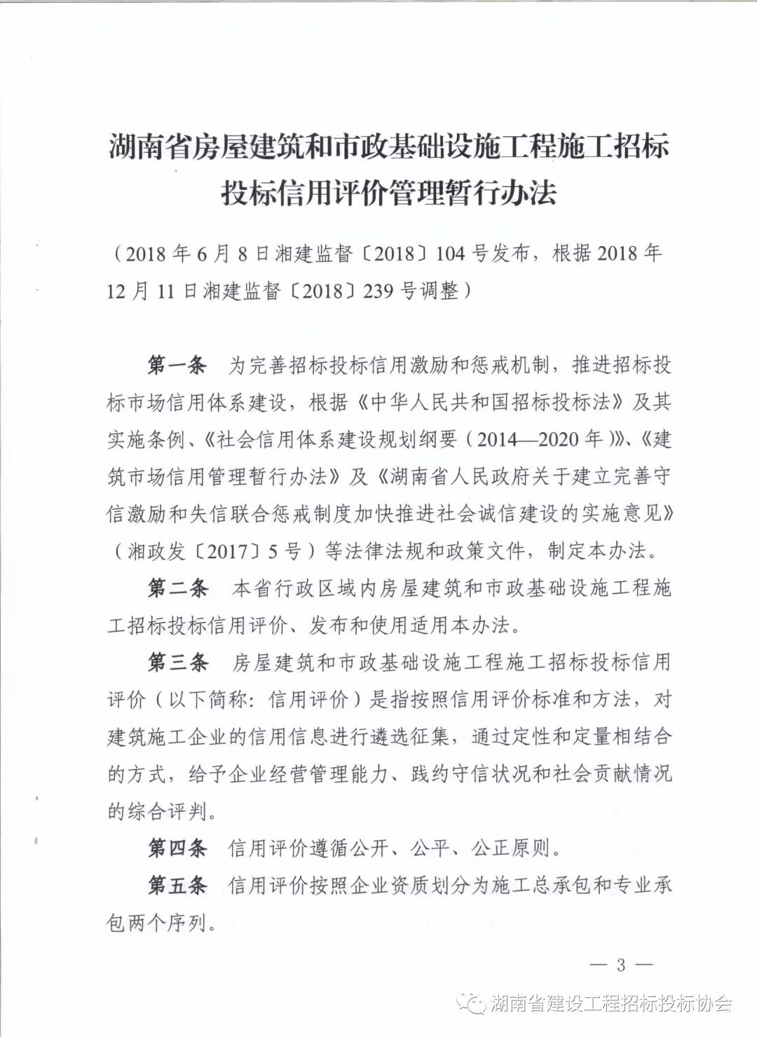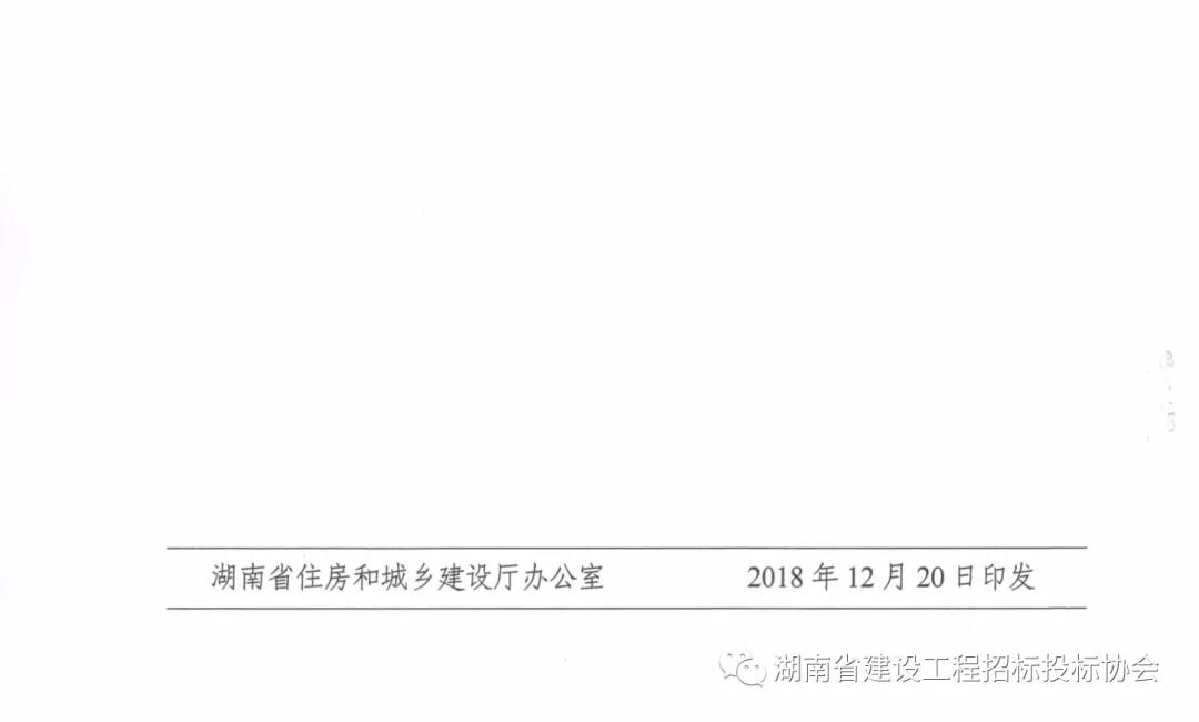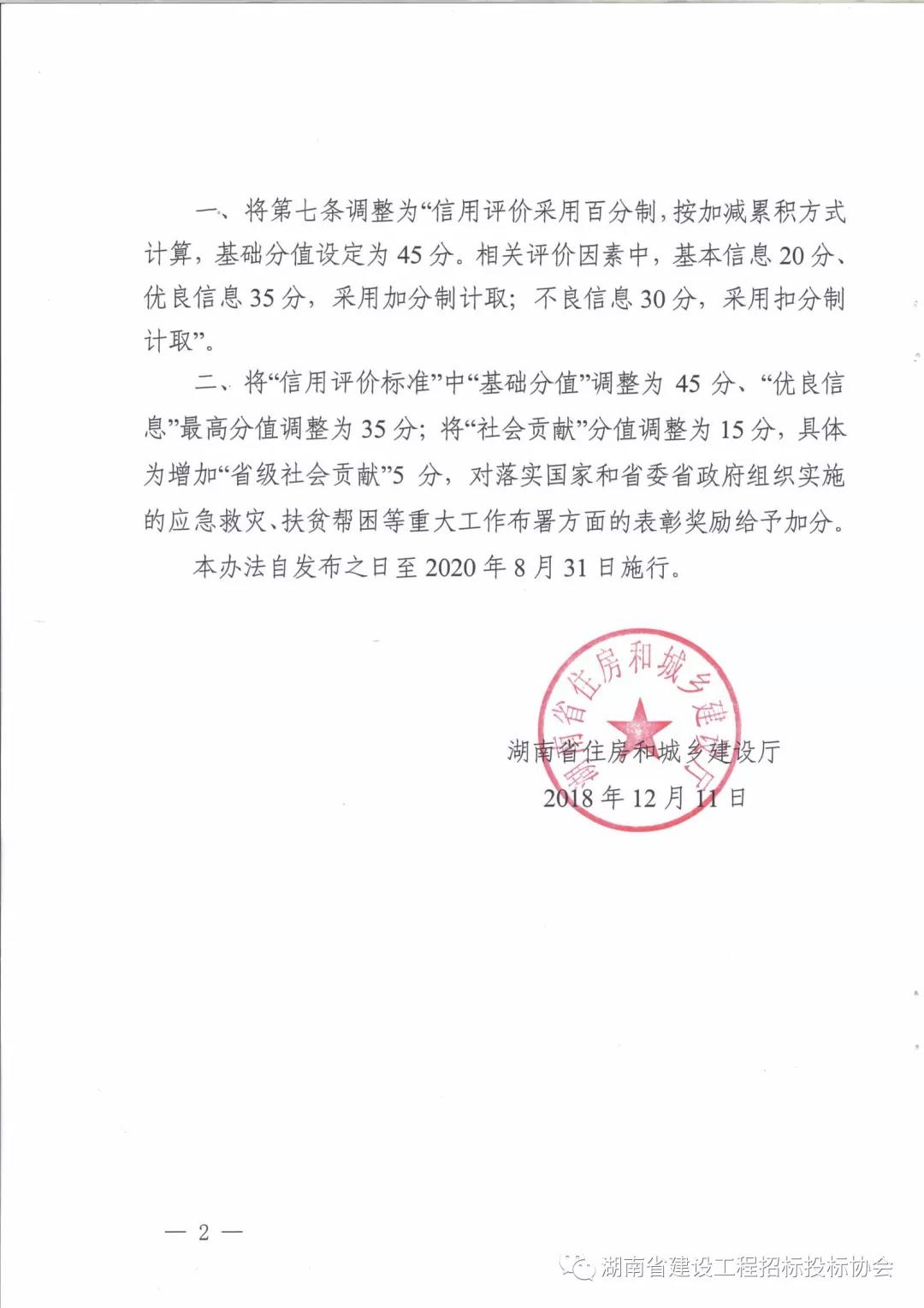 湖南省住房和城鄉建設廳關于調整《湖南省房屋建筑和市政基礎設施工程施工招標投標信用評價管理暫行辦法》中信用評價基礎分值的通知 湘建監督【2018】239號