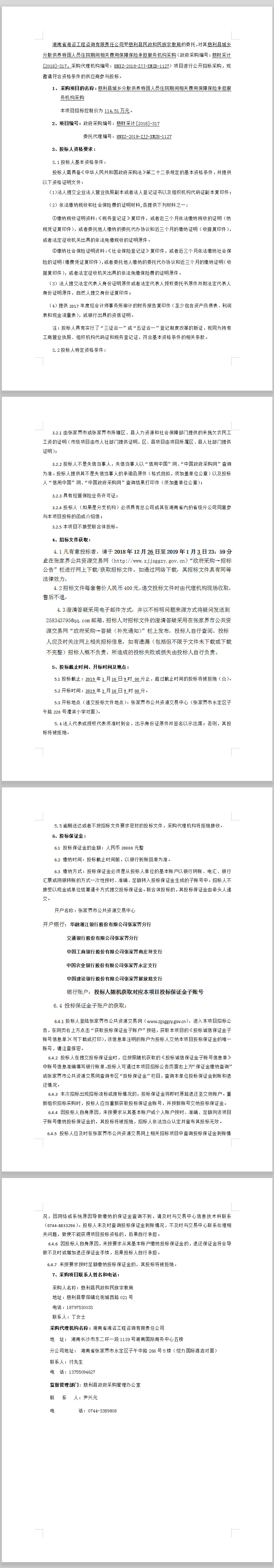 慈利縣城鄉分散供養特困人員住院期間相關費用保障保險承擔服務機構采購