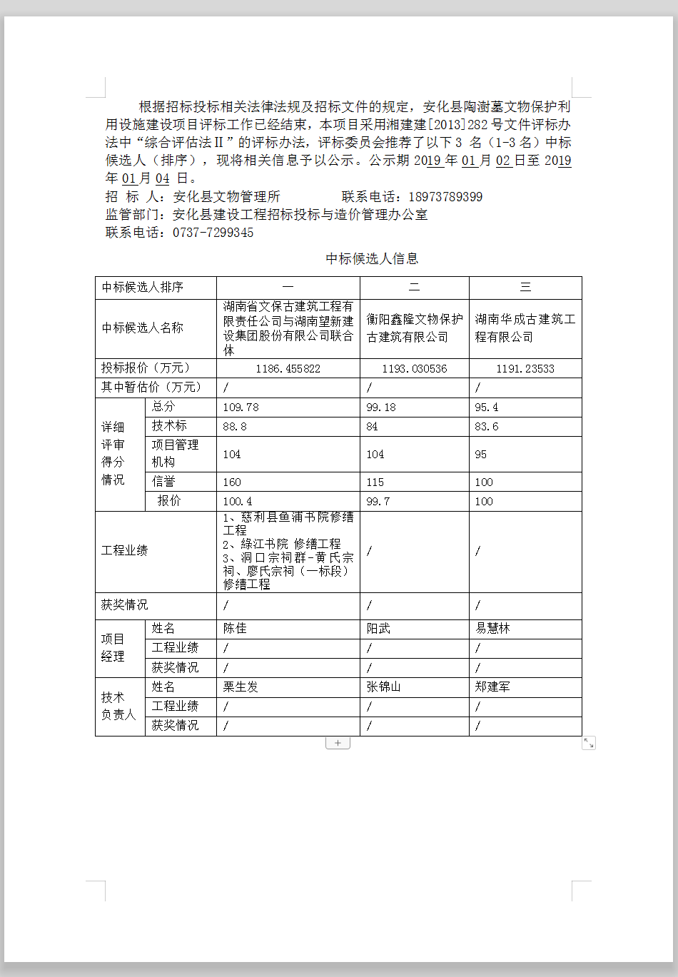 安化縣陶澍墓文物保護利用設施建設項目中標候選人公示更正公告