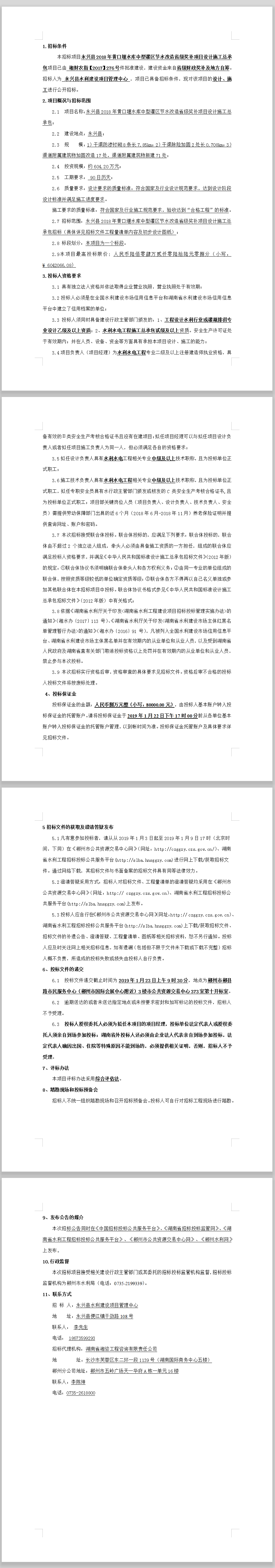 永興縣2018年黃口堰水庫中型灌區節水改造省級獎補項目設計施工總承包招標公告