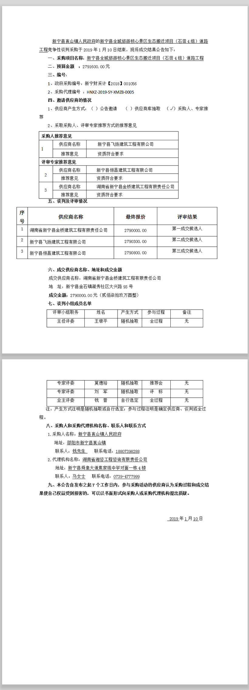 新寧縣全城旅游核心景區生態搬遷項目(石田4組)道路工程 競爭性談判成交結果公告