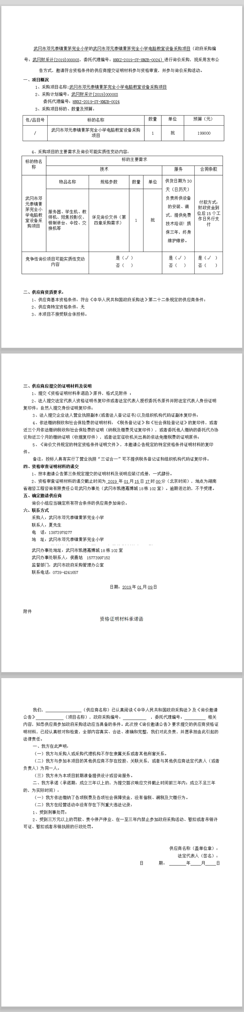 武岡市鄧元泰鎮黃茅完全小學電腦教室設備采購項目詢價采購邀請公告
