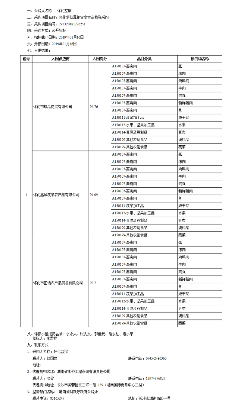 懷化監(jiān)獄罪犯食堂大宗物資采購定點(diǎn)供應(yīng)商入圍中標(biāo)公告