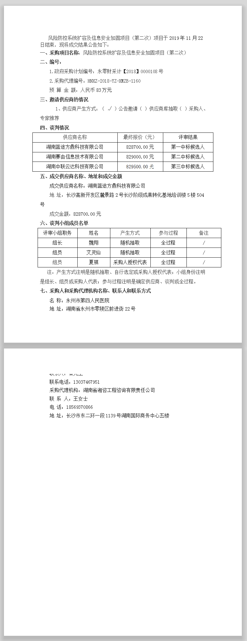 風險防控系統擴容及信息安全加固項目(第二次)競爭性談判成交公告