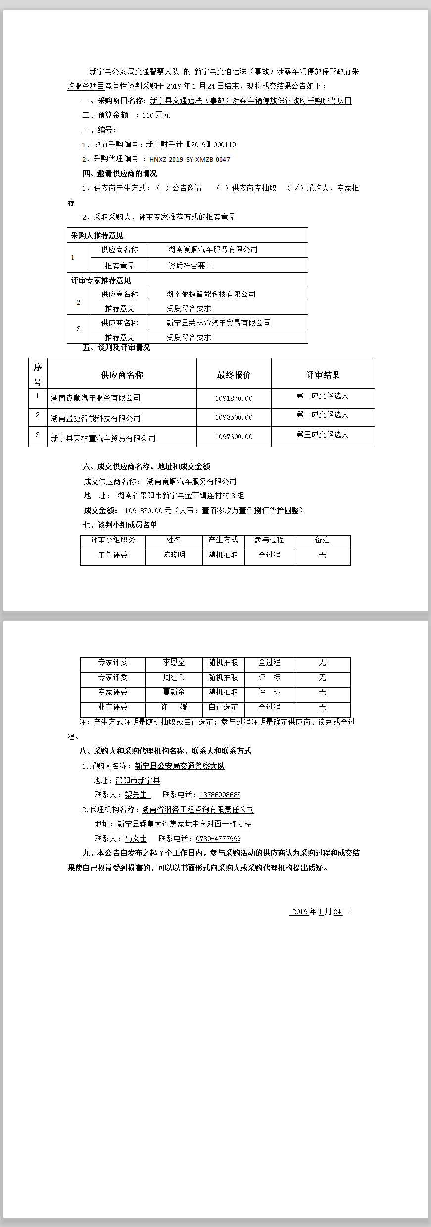 新寧縣交通違法(事故)涉案車輛停放 保管政府采購服務(wù)項目 競爭性談判成交結(jié)果公告