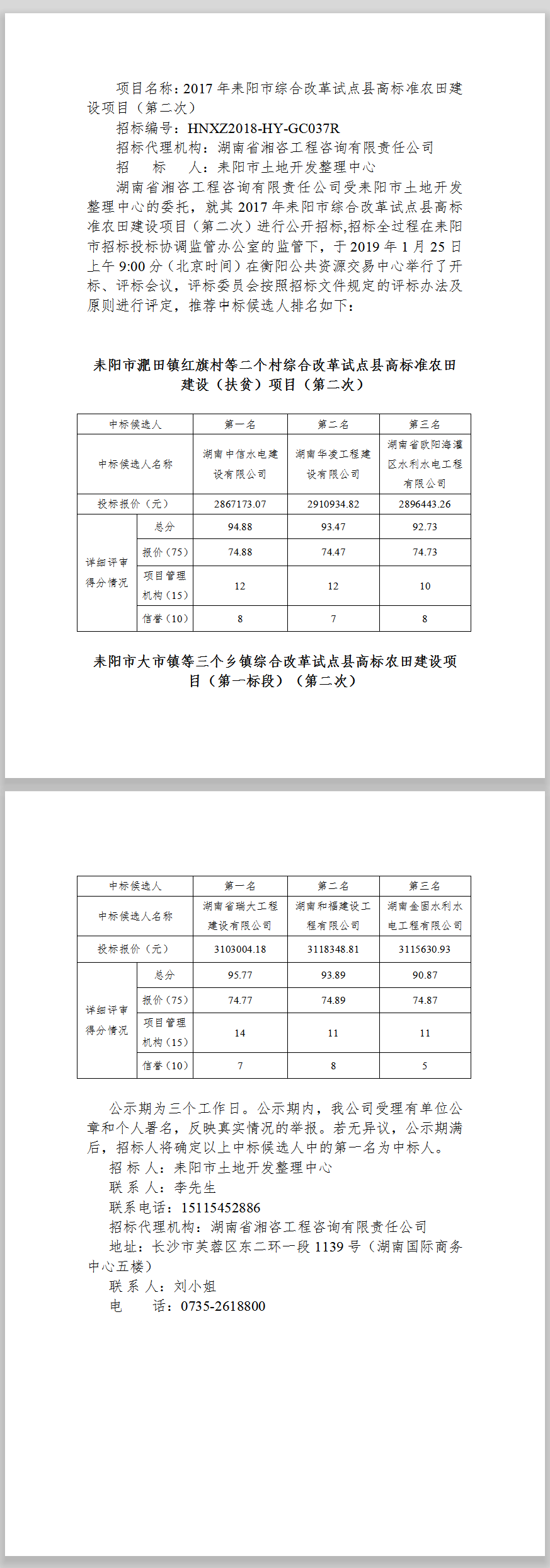 2017年耒陽市綜合改革試點(diǎn)縣高標(biāo)準(zhǔn)農(nóng)田建設(shè)項(xiàng)目(第二次)中標(biāo)候選人公示