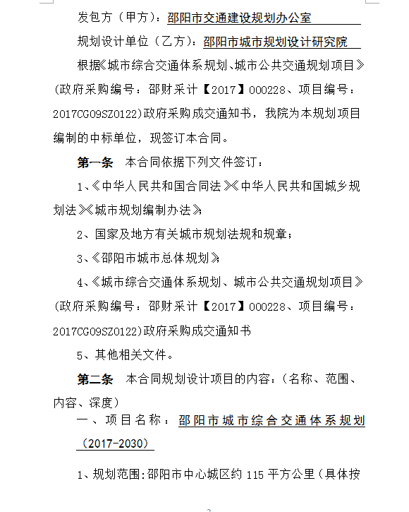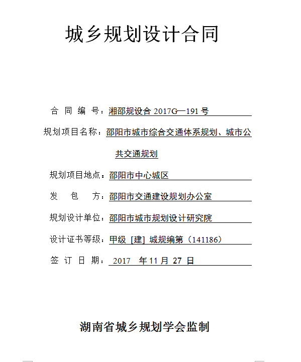 邵陽市城市綜合交通體系規(guī)劃、城市公共交通規(guī)劃合同公示