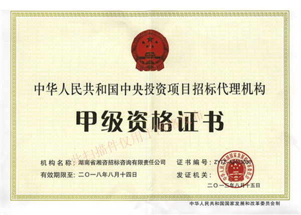 熱烈慶祝我司獲得國家發改委中央投資項目招標代理機構甲級資格