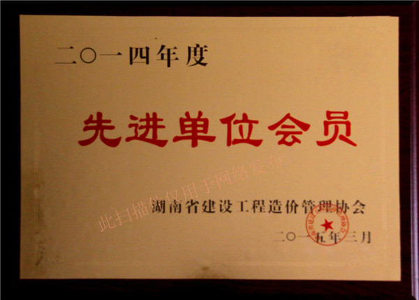 【喜訊】熱烈慶祝我司榮獲湖南省造價工程管理協會2014年度先進單位會員
