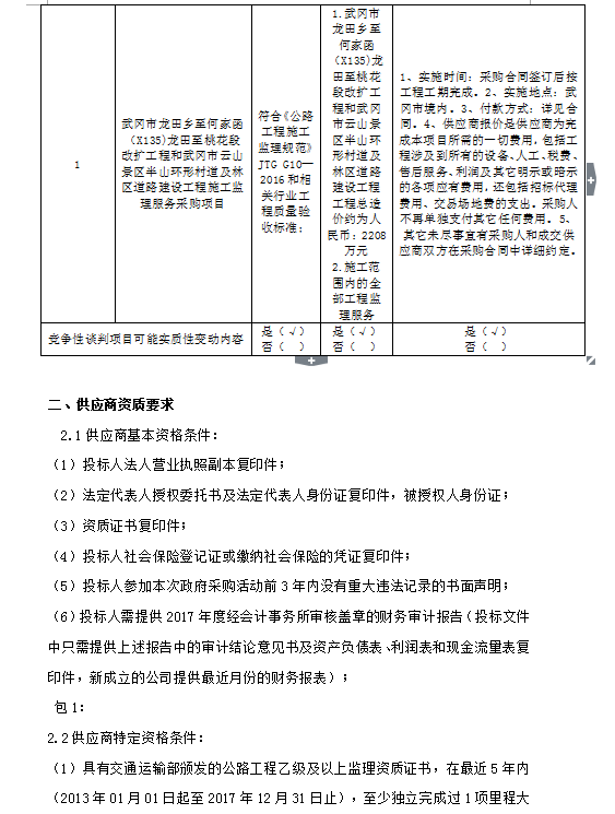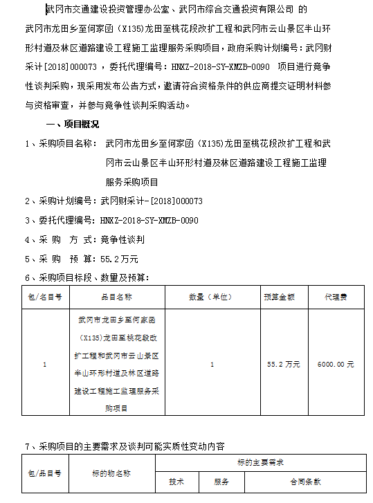 武岡市龍?zhí)镟l(xiāng)至何家函(X135)龍?zhí)镏撂一ǘ胃臄U(kuò)工程和武岡市云山景區(qū)半山環(huán)形村道及林區(qū)道路建設(shè)工程施工監(jiān)理服務(wù)采購項(xiàng)目競爭性談判邀請(qǐng)公告