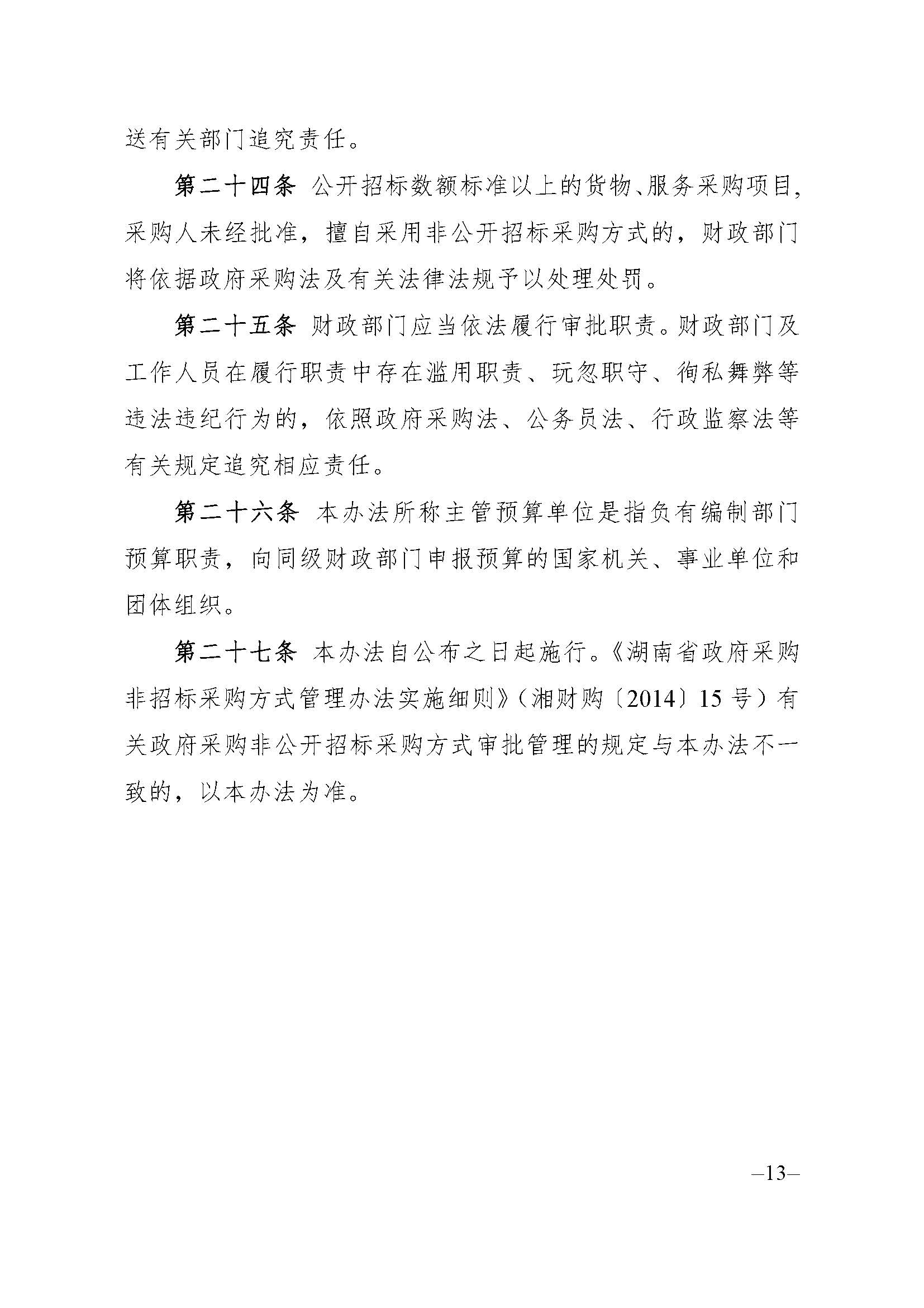 湖南省財政廳關于印發《湖南省政府采購 非公開招標采購方式審批管理辦法》的通知