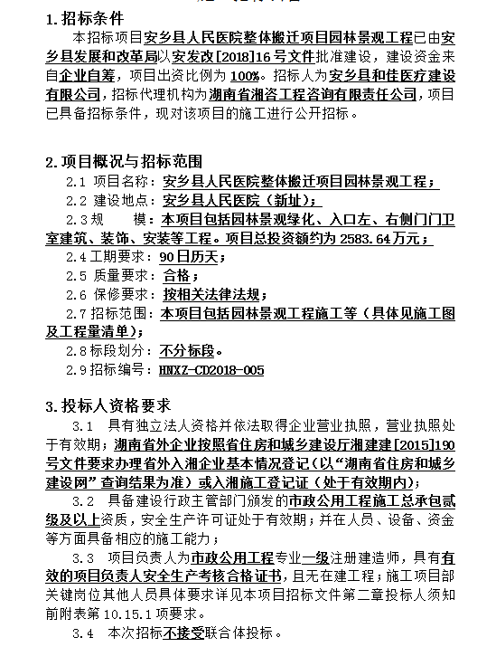 安鄉(xiāng)縣人民醫(yī)院整體搬遷項目園林景觀工程 施工招標(biāo)公告