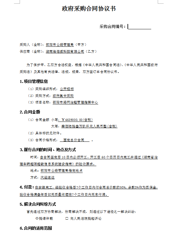 邵陽市路網治超管理指揮中心合同公示