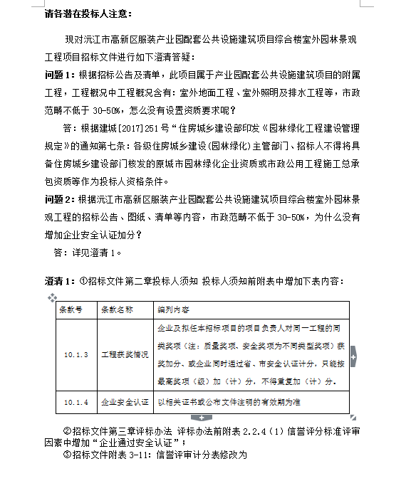 沅江市高新區服裝產業園配套公共設施建筑項目綜合樓室外園林景觀工程澄清答疑公告