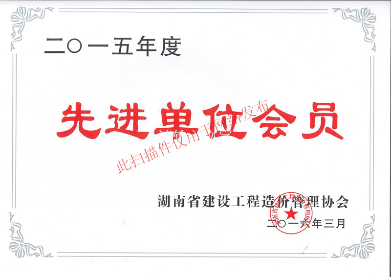 【喜訊】熱烈慶祝我司榮獲湖南省建設工程造價管理協會頒發的2015年度先進單位會員
