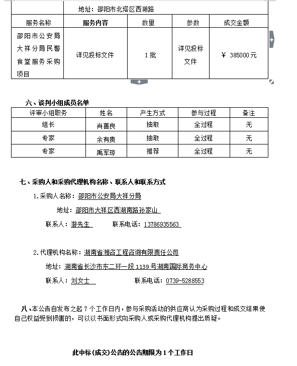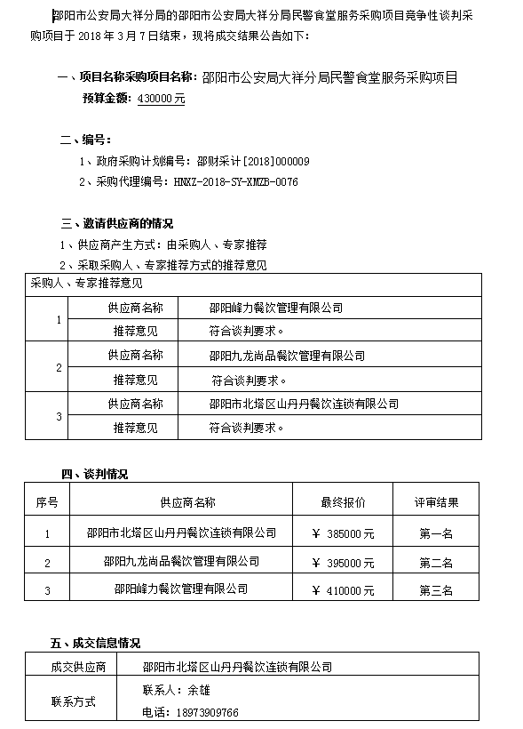 邵陽市公安局大祥分局民警食堂服務采購 競爭性談判成交公告