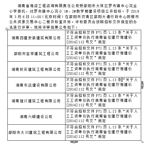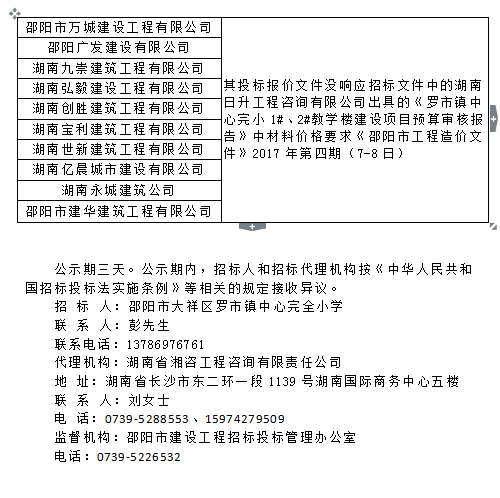 羅市鎮中心完小1#、2#教學樓建設項目 評審結論公示