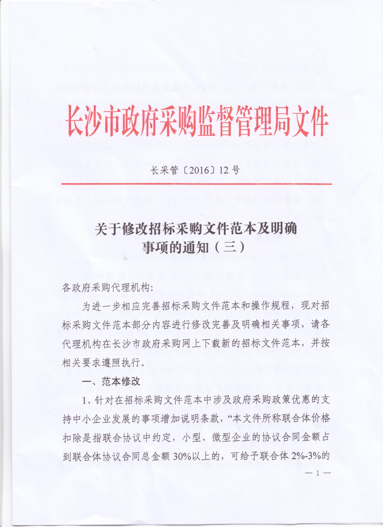 關(guān)于修改招標(biāo)采購文件范本及明確事項(xiàng)的通知(三)(長采管[2016]12號(hào))