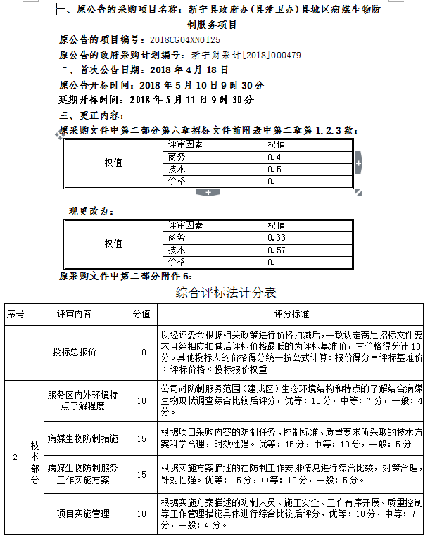新寧縣政府辦(縣愛衛辦)縣城區病媒生物防制服務項目 公開招標更正公告(二)